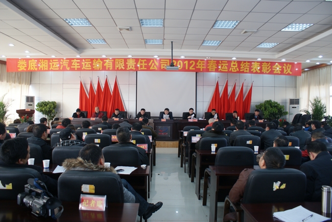 雄壯的國歌聲開啟了先進表彰會的序幕。首先,公司董事長兼總經(jīng)理彭瑞華做了2012年春運工作總結(jié)。他說,2012年春運于1月8日開始,至2月16日結(jié)束,全司上下緊緊圍繞“以人為本、科學組織、安全有序、優(yōu)質(zhì)高效”的總體要求,在各級政府及行業(yè)主管部門的關(guān)心和支持下,通過廣大員工的共同努力,實現(xiàn)了春運安全生產(chǎn)雙豐收,春運40天全司共完成招攬收入3496.42萬元,與2011年同期比增加了165.6萬元,增長了4.97%。全司共運行班次11.03萬次,共投入建制營運客車376臺、旅游公車30臺、出租車114臺,參運客車駕駛員484名、出租車駕駛員228名,安全運行里程736.8萬公里。春運40天,各單位充分利用了廣播、電視、網(wǎng)絡(luò)、報紙、刊物等宣傳媒體,及時宣傳報道了公司的春運安全生產(chǎn)情況。同時,他指出,今年春運期間各單位均能從服務(wù)質(zhì)量入手,改變春運期間客流量大、服務(wù)工作難的傳統(tǒng)觀念,盡管節(jié)后站場內(nèi)車多客流大,站外運輸市場競爭激烈,各單位均能克服困難,維護好站場秩序穩(wěn)定和站內(nèi)衛(wèi)生清潔,較好的樹立了文明窗口的形象。尤其是正月初六、初七因旅客較多,部分班車因道路堵塞晚點,致使旅客滯留在候車室,各單位均能安排人員耐心解釋,熱情服務(wù),直至旅客發(fā)完后才回去休息,受到廣大旅客的一致好評。最后他強調(diào),2012年是國家“十二•五”規(guī)劃實施后承上啟下的重要一年,也是我司實現(xiàn)跨越式發(fā)展的關(guān)鍵之年,我們要繼續(xù)發(fā)揚成績,克服不足,把春運工作的重心從緊緊圍繞目標任務(wù)開始,制定切實可行的方案和措施,從而變“坐攬營收”為招攬營收,真正做到收入顆粒歸倉。