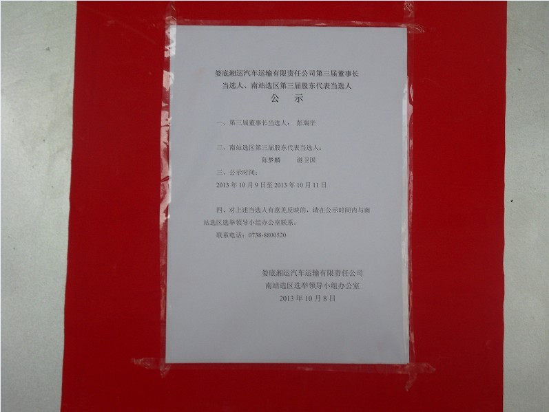公司董事長當(dāng)選人、南站選區(qū)股東代表當(dāng)選人公示