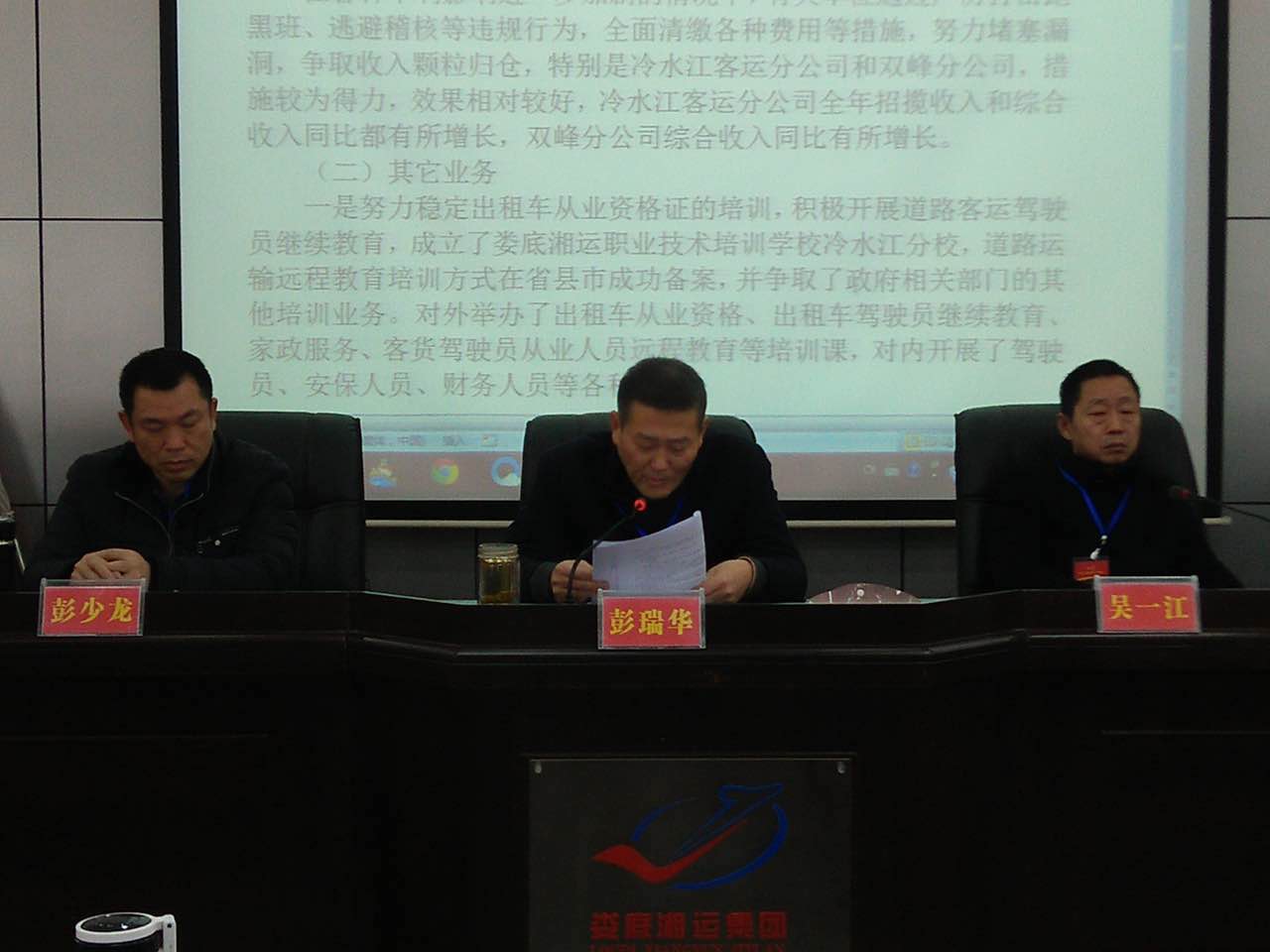 公司董事長(zhǎng)兼總經(jīng)理彭瑞華在大會(huì)作《公司2017年工作報(bào)告》,他總結(jié)回顧了2016年主要工作完成情況,對(duì)2017年工作提出了新思路和新規(guī)劃。2016年面對(duì)日益惡化的外部環(huán)境和前所未有的壓力,全司上下團(tuán)結(jié)一心,沉著應(yīng)對(duì),在危機(jī)中抓機(jī)遇、在困難中謀發(fā)展,通過(guò)夯實(shí)安全管理,開(kāi)拓生產(chǎn)經(jīng)營(yíng),主副業(yè)并舉提效,保持了企業(yè)的健康穩(wěn)定發(fā)展。2017年公司將全面深化企業(yè)內(nèi)部改革,進(jìn)一步加強(qiáng)企業(yè)安全生產(chǎn)管理,采取有效措施遏制班線客運(yùn)份額和收入再減少趨勢(shì),鞏固和發(fā)展現(xiàn)有門面場(chǎng)地租賃、城市客運(yùn)、職業(yè)培訓(xùn)、油料供應(yīng)和汽車維修等業(yè)務(wù),做大做強(qiáng)旅游客運(yùn)業(yè)務(wù),下力氣發(fā)展城鄉(xiāng)公交和城際公交業(yè)務(wù),努力尋找能帶動(dòng)公司轉(zhuǎn)型升級(jí)的有前景的項(xiàng)目,攻堅(jiān)克難,內(nèi)嚴(yán)管理外爭(zhēng)市場(chǎng),主動(dòng)適應(yīng)新常態(tài),使企業(yè)在改革中穩(wěn)步健康發(fā)展。