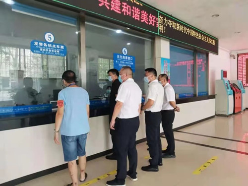 此次督查采取四不兩直的方式,督查組來到婁底汽車南站候車廳,檢查了旅客及司乘人員口罩佩戴、進站健康碼和行程碼查驗、體溫測量等疫情防控工作,何鋒在空調(diào)候車廳向旅客親切詢問:到哪里去?車站是否查驗了健康碼、行程碼?是否督促你們佩戴口罩?在聽到旅客滿意的回答后,他來到發(fā)班區(qū),登上了一輛即將發(fā)車的婁底至于塘班車,檢查車輛疫情防控措施落實情況,何鋒對在場人員強調(diào),班車一定要隨車配備測溫槍,切實加強防控措施,確保萬無一失。最后他來到售票廳,對工作人員進行了親切問候,叮囑大家要加強自我保護,并提醒旅客購票保持一米線距離等。