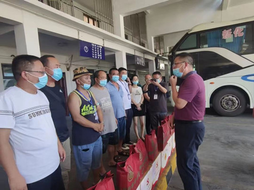 在婁底汽車(chē)站,譚主席一行走訪慰問(wèn)在高溫下堅(jiān)守崗位的一線(xiàn)員工,為他們發(fā)放了夏日清涼慰問(wèn)品。譚主席親切與員工們交談,對(duì)他們高溫酷暑下工作的堅(jiān)守和付出表示感謝,叮囑他們?cè)谡J(rèn)真工作的同時(shí),要做好防暑降溫,確保身體健康和生產(chǎn)安全,同時(shí)囑咐在場(chǎng)的企業(yè)負(fù)責(zé)人,要合理安排工作和休息時(shí)間,落實(shí)好高溫作業(yè)下的各項(xiàng)保障措施,為員工創(chuàng)造一個(gè)舒適、安全的工作環(huán)境。聽(tīng)了譚主席的話(huà),在場(chǎng)的員工們深受感動(dòng),紛紛表示,盡管受到高溫天氣和疫情防控的雙重考驗(yàn),但組織的關(guān)心讓大家充滿(mǎn)動(dòng)力和信心,大家一定會(huì)堅(jiān)守崗位,做好本職工作,為疫情防控和交通運(yùn)輸保障做出好的成績(jī)。多年來(lái),作為職工的“娘家人”,婁底市總工會(huì)始終關(guān)心關(guān)愛(ài)企業(yè)和職工,通過(guò)積極開(kāi)展各類(lèi)關(guān)愛(ài)行動(dòng),傳遞著工會(huì)組織的溫暖,助力企業(yè)發(fā)展。此次來(lái)我司開(kāi)展送清涼慰問(wèn)活動(dòng),讓酷熱中堅(jiān)守在一線(xiàn)的我司廣大職工感受到工會(huì)“娘家人”的關(guān)心關(guān)愛(ài),極大激發(fā)了大家戰(zhàn)疫情、斗酷暑的工作熱情,激勵(lì)廣大職工為交通事業(yè)發(fā)展做出更大的貢獻(xiàn)。